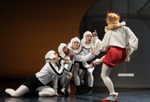Pour le spectacle Le roi et l’oiseau, Emilie Lalande a réaliser une grande partie des costumes seule. Je suis intervenue uniquement sur la bergère et le roi et l’ai parfois conseillé sur certaines réalisations. J’ai aussi participé à la réalisation des éléments textiles du décor.